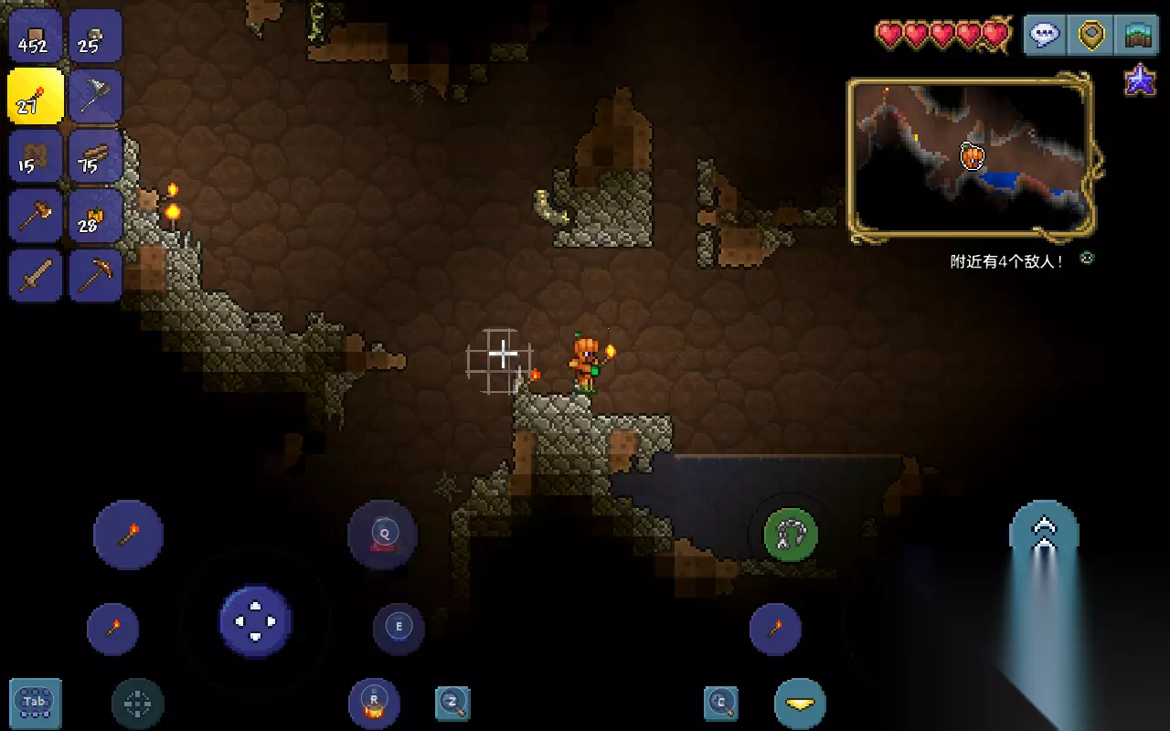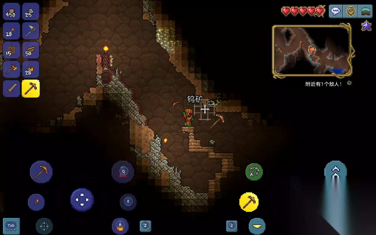 怎么往上爬:对于新手来说肉山还比较遥远,现在来说探索地下要注意些什么。有时探索地下会掉到比较下方的位置,头顶有宝箱或者矿的话就不好获得了。 这时可以用木材或者石头一点点往上堆,注意弄成台阶的形式,角色也同时往上爬。使用木材的话后续可以使用锄头回收,石头的话就随便了,挖矿时顺手挖的石头非常多。