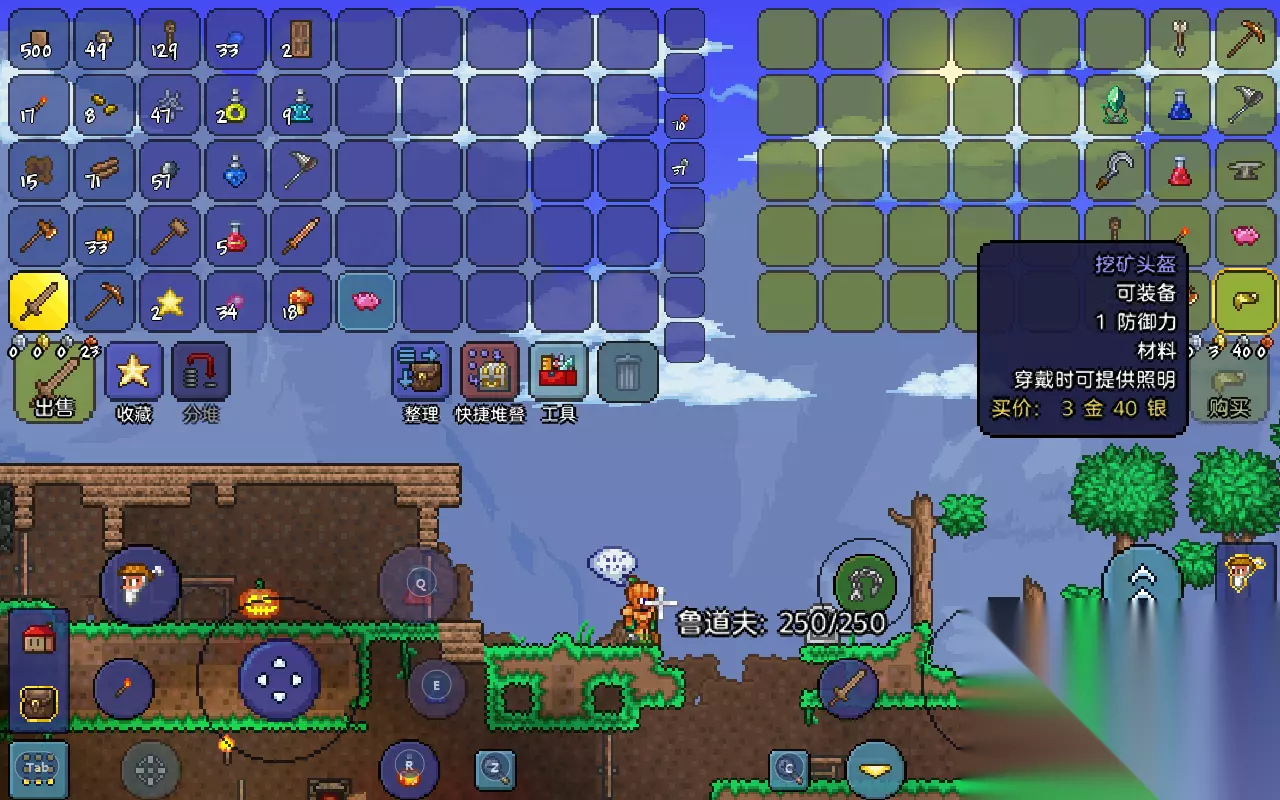 如果身上金币足够多的话,也可以在商人npc处购买个挖矿头盔,实用性很高,当然,火把依然是必需品。