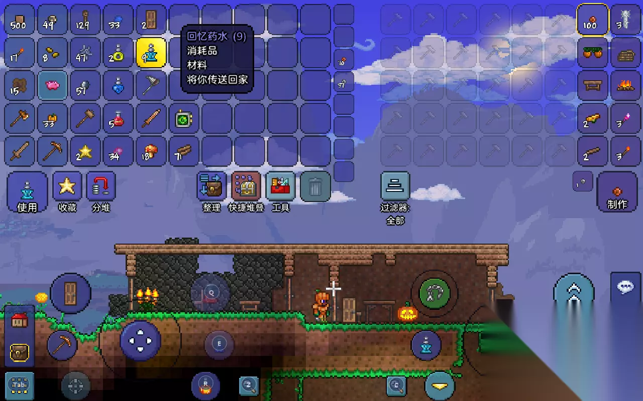 回城:在地下挖个游戏时间10多天的都是很正常的,但是要如何快速回到地表存放资源呢,一种是使用回忆药水,还有种是直接退回主界面,下次登录就是在地表重生点了。 总结 实际上把泰拉瑞亚称之为挖矿者与地下城也不为过,这游戏大部分玩法都是在地下,在初期的地下比地表的夜晚还要安全许多。 对于泰拉瑞亚的地下探索有什么疑问的欢迎留言额~