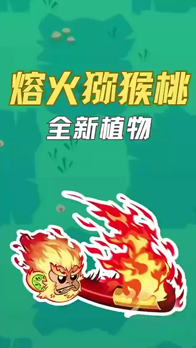 是谁!一登场就能点燃全场!? 是熔火猕猴桃重磅来袭! 它挥舞烈焰战棒,一击弹射三格横扫僵尸大军,超强群伤瞬间清场!用最炽热的攻势改写战局!