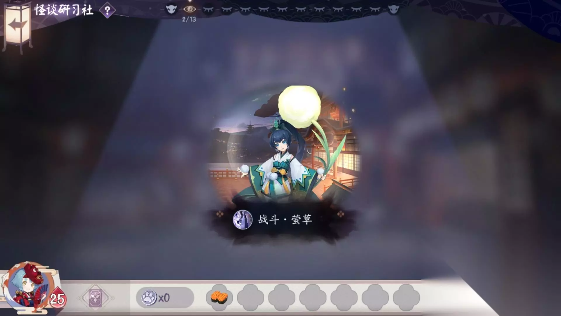 第二关:对战萤草 敌方生命值:15 敌方式神:清姬 大天狗 凤凰火 萤草 敌方技能:法术强化 技能效果:双方牌手获得法术伤害+1。 对局中遇到的妖怪是随机的,不管遇到什么样的式神,只要掌握好对战思路,都可以通过。