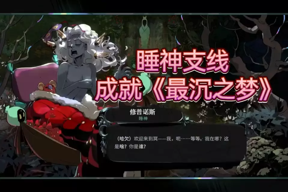 这是《Hades2》睡神的梦境part3内容,冥界王女墨利诺厄发现一张写着“你有试过说‘醒醒’吗?”的便签,随后叫醒了原本在装睡的睡神修普诺斯。