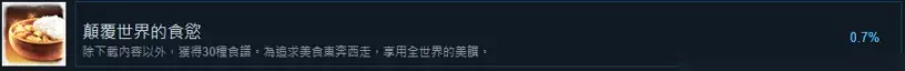 20. 颠覆世界的食欲 除DLC以外,获得30种食谱。