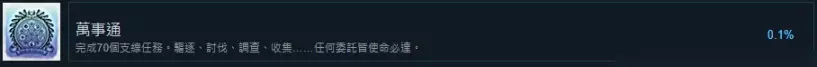 16. 万事通 完成70个支线任务。