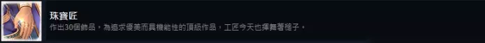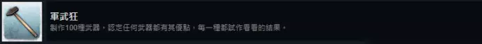 本作一共38个食谱,做特殊的饭,比如冰淇淋、生鱼片这些还会附加解锁人物的技能盘。 注意点3:容易错过的食谱 食谱(三明治),在支线任务猫头鹰旅社中,需要在任务流程中选择“大篮子”就可以拿到这个食谱,选择“小篮子”是拿不到的,即使错过也没关系,38个食谱,找到其中30个食谱即可解锁成就,有4个食谱是预购游戏的奖励,不计入总数。 武器、饰品制作成就 21. 军武狂 制作100种武器。