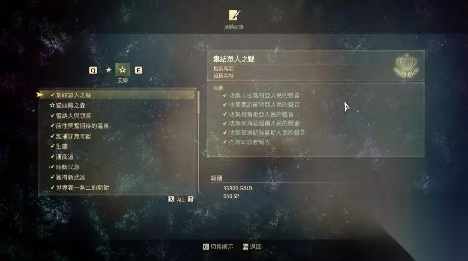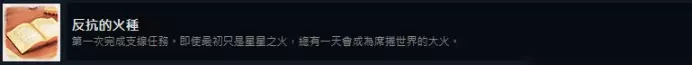 支线任务成就 15. 反抗的火种 第一次完成支线任务。