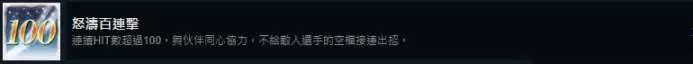 25. 怒涛百连击 连续HIT数超过100。(角色技能也能攒连击,可以等6个技能全好时候穿插使用)