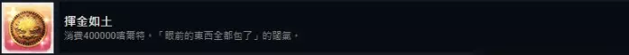 累积成就 28. 挥金如土 消费400000喀尔特。