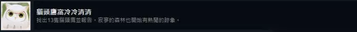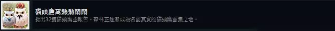 注意点5:舍得花钱、定好闹钟 农业老手也是要舍得花钱,600块饲料该买就买,这里成长时间也是根据现实生活来的,一次性养5只,分10次养,大概4个小时可以做完,记得半小时定一次闹钟,最好也是前期和好感度成就一起穿插进行。 猫头鹰 44. 猫头鹰窝密密麻麻 找出所有猫头鹰并报告。