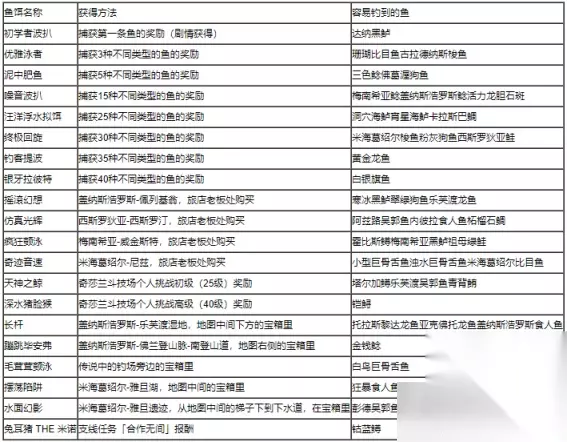 jrpg怎么能错过钓鱼,尼尔伪装者上个月才钓齐,破晓传奇钓鱼最重要的是鱼饵,获得方式如下,其次是钓竿和手柄的特殊按键,一共是12个钓鱼点44种鱼,同类鱼钓上来一次即可。