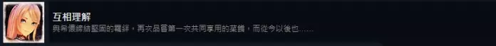 目前达成率0%的成就 14. 扳倒高墙之人 所有伙伴缔结坚固的羁绊。共度过漫长的时间,在多次交谈下突破心灵藩篱的证明。