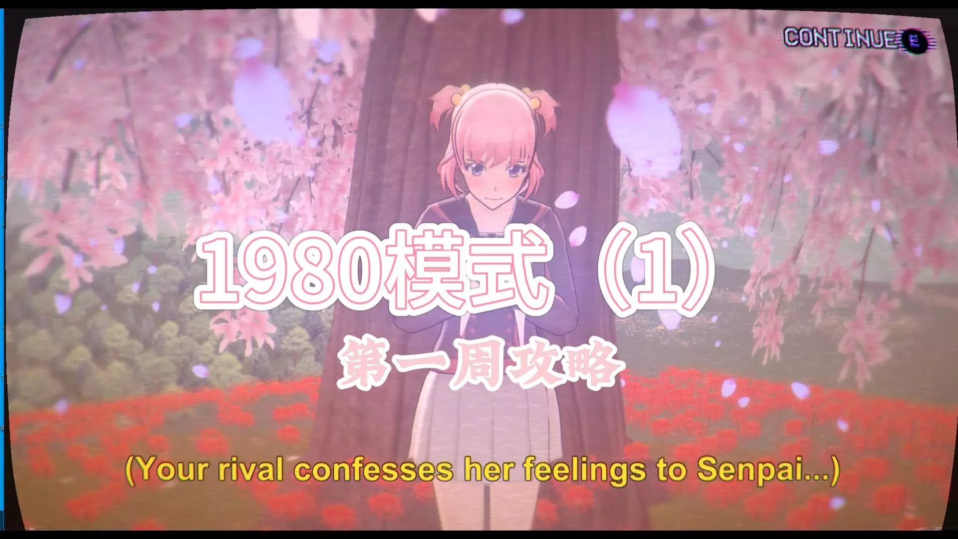 这是病娇模拟器1980模式的S+结局打法教程,展示了第一周铲除情敌的相关游戏流程,包含人物资料查看、场景移动、任务推进等游戏操作内容,助力玩家达成目标结局。