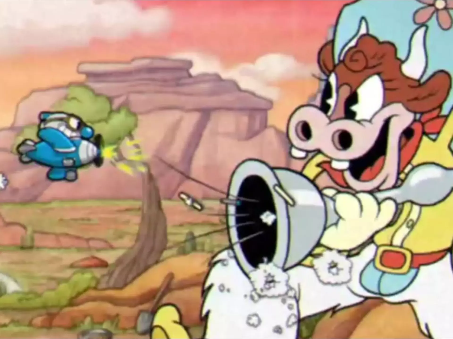 这是《茶杯头》的游戏内容分享,展示了玩家使用豆子武器,无伤S评价通关“遛狗”关卡的过程,呈现了关卡里的空战战斗场景与通关后的结算画面。