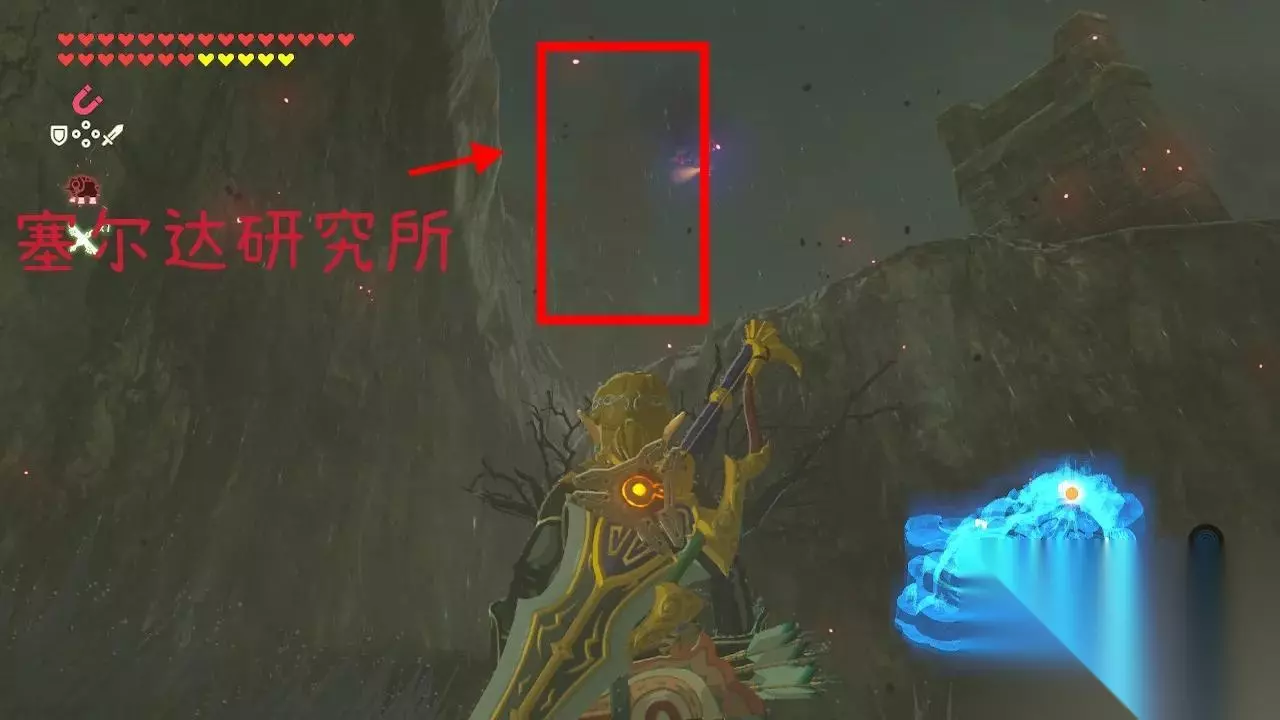传送船坞的神庙,从船坞出来往左,可以看到一个高耸的城堡塔——塞尔达研究所