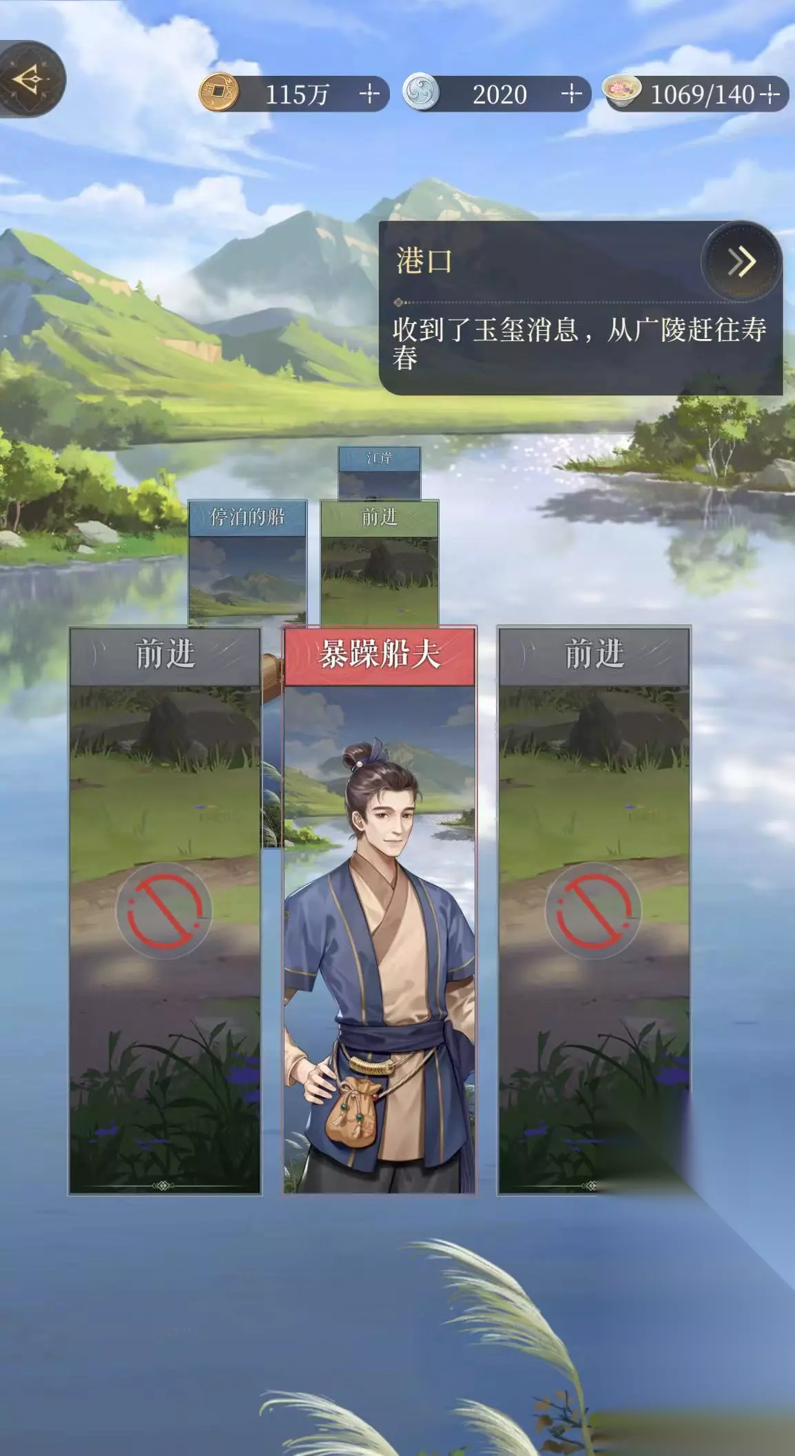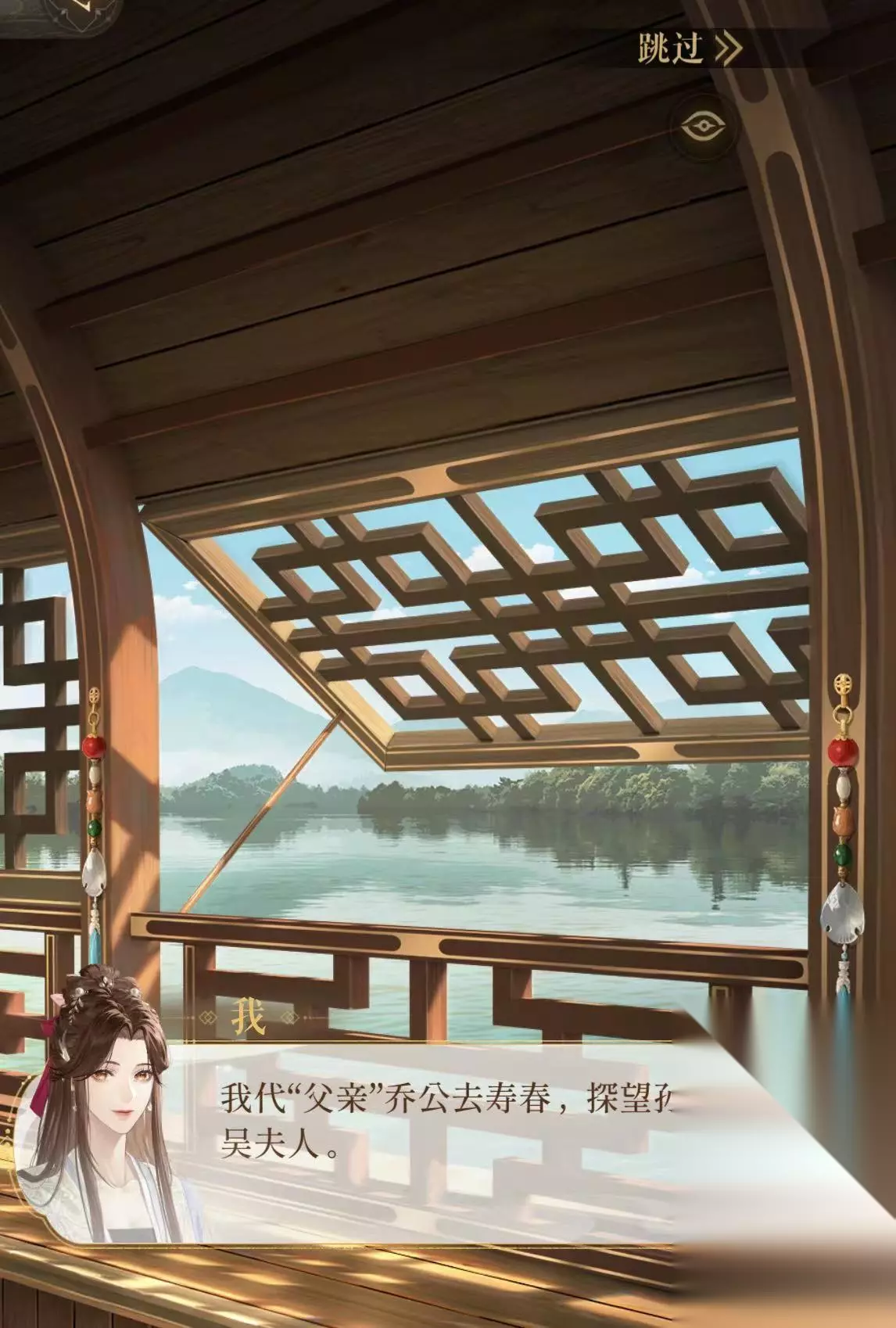 通过水路找到可信的船夫,成功登船之后广陵王介绍此行目的。玩家现在的身份是庐江乔氏家的大女儿,乔氏是绣衣楼在南方的势力之一,而且与此行所到目的地孙家有世交。玩家扮演的广陵王前往寿春代替其父亲看望吴夫人,因为她是乔氏的长女,所以大家都称她为大乔。