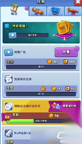 对于已经拥有一定资源储备的玩家们而言,可以选择直接升级战斗通行证,亦或是增强自己在竞技场当中的基础段位,也能够通过阶段性挑战的胜利,来直接获取金币数额。 同时,当玩家升级了战斗通行证,还能够同步的领取到免费通行证的所有金币数值。 其次,玩家完成游戏的收集,也能够获取大量金币,例如完成新英雄的解锁,亦或是成功进阶了英雄的品阶亦或是等级,达到指定程度时,同样能够领取到金币。