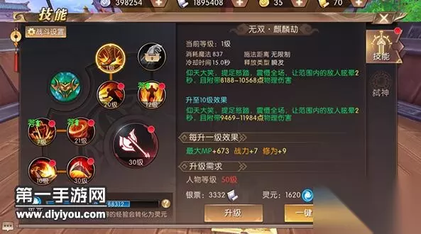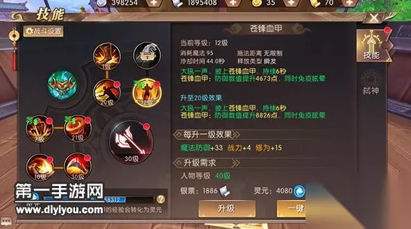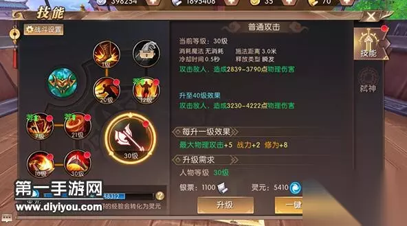 着重观察点: 1. 状态技能:战士有3个控制技能,一个状态技能,合理搭配,可以创造最大输出 2. 技能效果:技能每点一下,都会给人物增加相应的属性提升 3. 技能等级:合理分配角色技能等级,技能每10级一个坎。