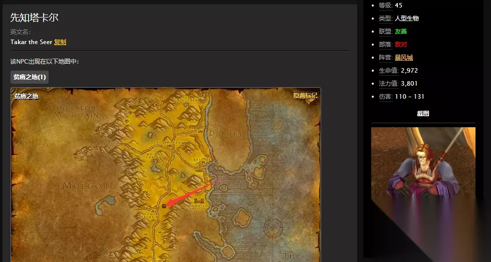 玩家需要去藏宝海湾坐船前往贫瘠之地的棘齿城,然后再去寻找先知卡塔尔,他就在陶拉祖营地的西边,具体位置如下: