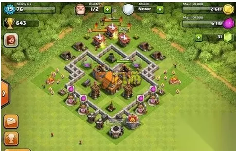 部落冲突升级到4本后,我们就得正式开始考虑如何防御敌人了。 虽然等级低的城墙很容易就被攻破,但是前期城墙的建造可以为各个设施建筑规划好安置点,方便后期大摆防御好阵。不过初期资源部足够,所以阵营布局也就相对比较简单! 部落冲突4本神阵二: