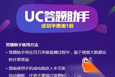 uc答题助手怎么使用: 1、答题助手直接的在答题直播过程中,基于搜索大数据实时计算答案;