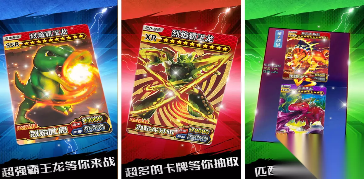 这款抽卡对战类型的手游是根据迷你特工IP开发的,独创的收集卡牌玩法充满休闲娱乐性,卡片包支持随意获取能开出的道具都是随机的,迷你特工造型帅气给人一种看特摄剧的特殊感觉,亦可抽卡获得各种高能武器给超能战队装备,卡牌标注着从C到SSS的等级让大家一目了然,刺激性不俗的抽卡对战流程也会让大家沉浸。 手机扫码下载233乐园APP预约 预约订阅最新动态 优先233乐园APP下载 4、《抽卡恐龙对战》