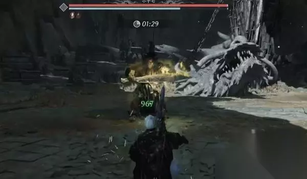 第二阶段:当小十七拔出石剑并在其上涂抹黄色火焰时,迅速后撤以拉开安全距离。此外,若石剑变红,则可以尝试格挡攻击。其余和一阶段保持一致即可。
