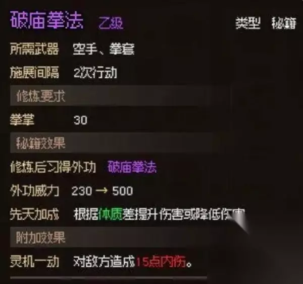 大侠立志传无名村小任务攻略 捉迷藏 :小丫 小花位置:樵夫家 小宝位置:村长家 小丫位置:破败民居(采石匠后面,民居里的锅是件紫色饰品装备) 小宝的秘密:小宝 送给小宝一把木剑:樵夫易物/学习打造,铁匠台打造 最后告诉你迷踪林红色树下有林芝(建议早去,开始樵夫救下有一张地图) 猜字谜:小花 1.需要一半,留下一半 答案:雷 2.池上没有水,地上不见土 答案:也 3.多子为好,少子为妙 答案:女 包打听的心愿:包打听 对话掌柜·花四娘得到手帕,交给包打听,也可老板娘邀请入队直接对话入队 郎中心愿:郎中·白头翁 迷踪林找灵芝,有两多,一朵红色树下,需要打五只野猪,一朵在去大野猪的路上(早点去拿,晚了就没了) 江湖救急 第一次进客栈的时候会碰到一女子吃饭没钱,帮她付会有一个需要鉴定的紫色饰品 教训泼皮 第二次进客栈的时候有泼皮找老板娘麻烦,教训他一顿 需要和老板娘关系至少10 窗外黑影:花四娘 当天子时至丑时,去客栈,泼皮找了三帮手,打赢他们,关系加10(需要和老板娘关系最少40触发) 铁矿石告急:铁匠·王大锤 四个时辰上缴8块铁矿(铁匠铺后面的采石匠旁边挖,挖够了再接任务。 铁匠的债务:铁匠·王大锤 队伍中有掌柜·花四娘,对话直接完成(需要2000钱,也可老板娘邀请入队后直接免除) 猎户的请求:猎户·刘十八 找铁匠·王大锤修复铁胎弓(提前屠夫那买狗肉,不要尝试杀猎人狗,会和村子关系变成恶劣 ) 猎户的往事:猎户·刘十八 地瓜烧(花四娘处购买) 行伍出身 杨家后人(触发传闻) 邀请刘十八获得“杨家牌位”,进入破庙密室开启,获得梨花枪法 破庙密室:破庙,进入战斗,破坏供桌 陈年旧疾:猎户·刘十八郎中·白头翁用灵芝制药 村长的蒲扇:村长 战斗模式弄死黄牛或者直接驱赶黄牛 传闻:破庙 需要30拳法精通,站破庙中间的蒲团上