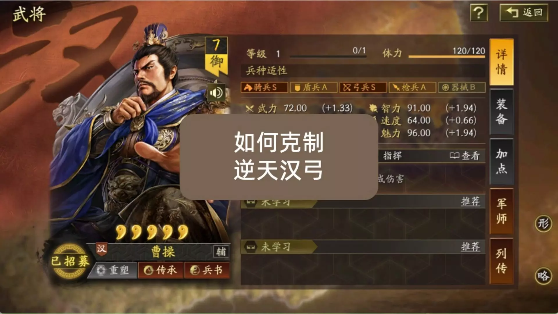 233乐园手游网 2025年07月22日:SP貂蝉的骑兵适性是B级,弓兵适性则为S。相比于老貂蝉强度高一些,它基本是用在弓队里面。如果碰上一些特殊的剧本,也可以走走骑兵流。它的面板中智力和满宠差不多,统率比不上张春华。卷速大约等于程普的水平,也就是说它的定位可算作是慢速队的辅助。SP貂蝉的自带战法名为“离月”,其特性1是能在自身吃到治疗时触发。有40%的几率转为治疗单体友方,奶量和面板智力相关。治疗效果在每个回合之中,最多引发五次。