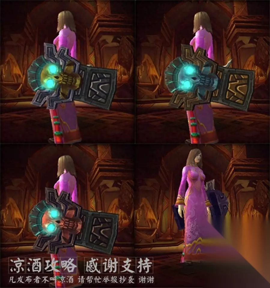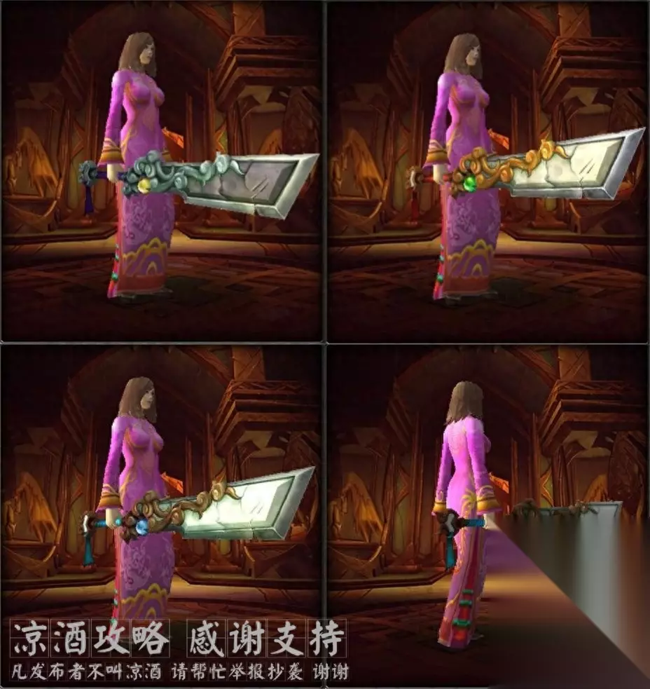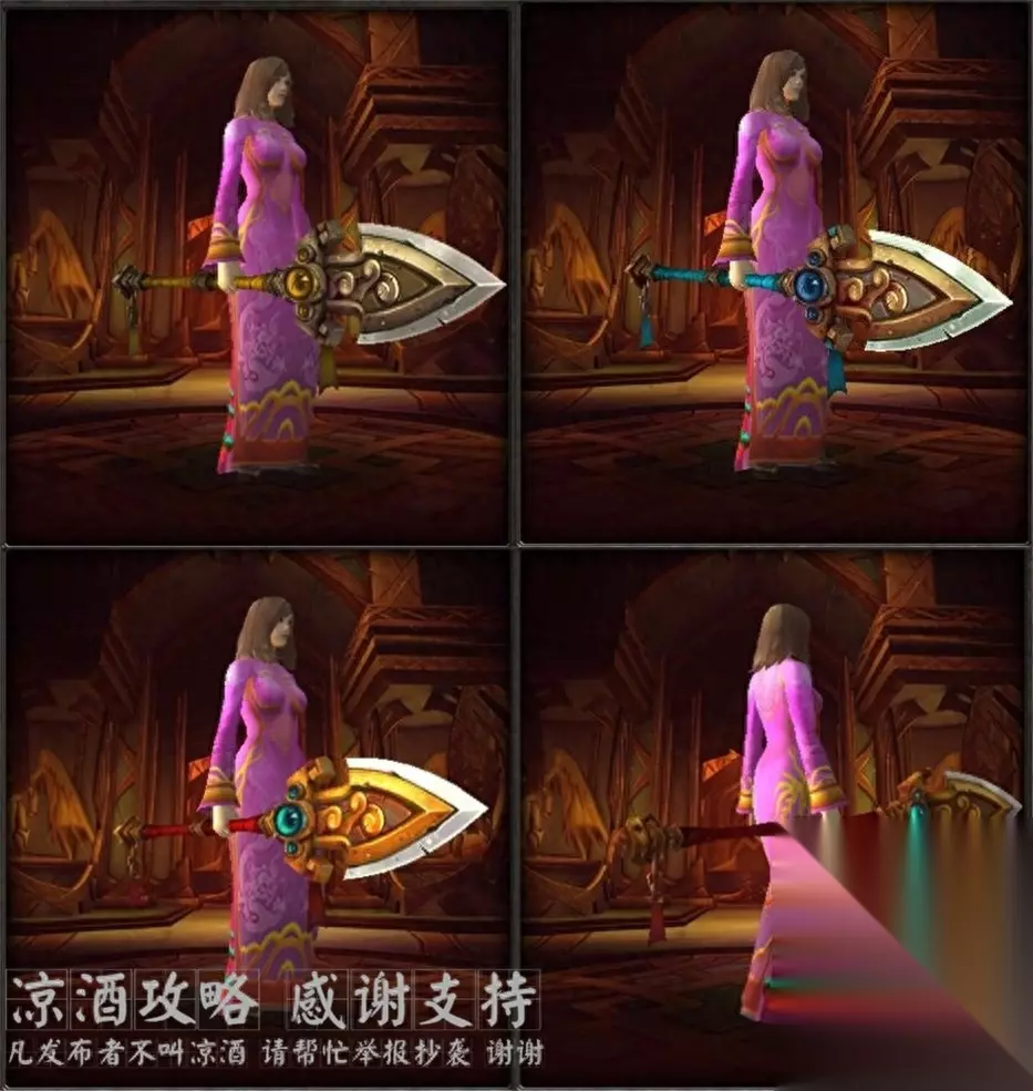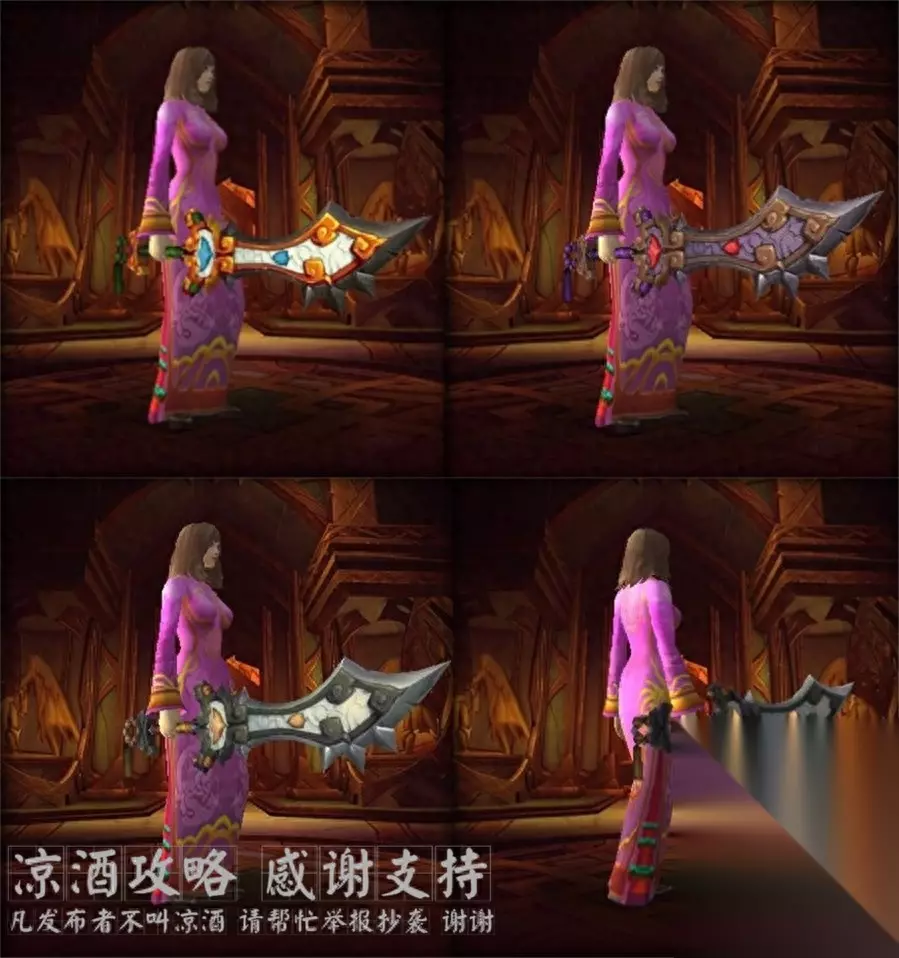 首先你要知道: 1.装备是否掉落跟职业无关,就算你这个职业使用不了这个武器也有掉这个武器的可能,比如法师也会掉双手锤,但是使用不了就加入不了幻化。 2.装备能不能roll出来跟职业和专精相关,你只能roll出来你能用的装备,比如法师就roll不出来双手锤,比如战士能使用单手剑,但roll不出来智力单手剑。 3.如果你什么也没有,推荐用战士去刷,因为战士所有的这些武器都能拿,即只要出了就能解锁幻化。 4.如果你只想刷出某一件,推荐用可使用该装备的职业刷,因为可能会roll出来,比如刷法杖就用法师牧师或者小德刷。 言归正题,我们说雷电王座的这些隐藏武器,一共有34把,12个模型,即11个模型有随机、普通、英雄三种难度配色,1个模型只有一种配色,三种难度都掉。 所以你每次击杀一个boss,这个boss都有可能会掉落这12个武器之一,颜色根据你击杀的难度不同。 下面是每个武器的外观: 双手锤---黎明之祈: