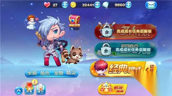 画面 精美的画面一直是腾讯旗下天美工作室的传统,而《天天酷跑》作为天美工作室的经典之作,精美细腻的画质不负所托,《天天酷跑》采用相当华丽的Q萌卡通风格,细腻的贴图、精致的场景都让作品有了很强的画面表现力。和游戏简单休闲的主题贴合,游戏的人物设计在帅气美艳之余同样也充满了轻松时尚的风味,两头身的Q版帅哥美女非常讨人喜欢。