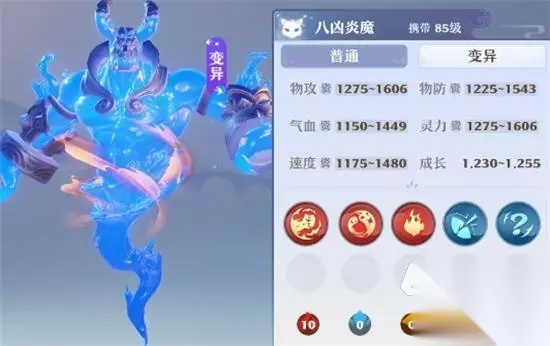 85级宝宝的选择不多,毕竟游戏后期,宝宝需要强悍的攻击力。炎魔和仙鹿宝宝是不错的选择。 八凶炎魔的技能独特,被动技能实用。在一众八十五级的灵兽中,炎魔唯一拥有物理攻击资质和灵力资质的。炎魔在PVE战斗中,采用物攻超强和焚香附体两种模式,