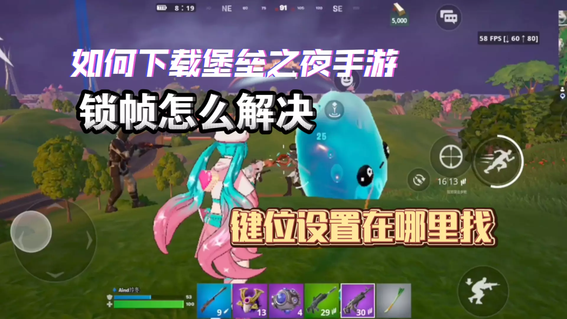 这是堡垒之夜手游新赛季的神话武器位置获取教学,展示了游戏内的场景,指引玩家寻找相关道具,还分享了速刷的武器搭配,帮助玩家获取神话武器。