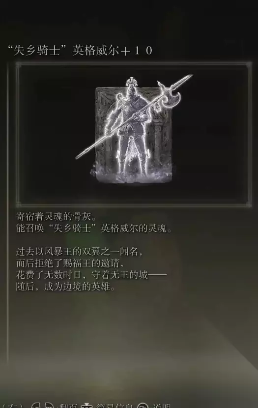 9、失乡骑士英格威尔(消耗专注100) 获取方式: 蒙流地下墓地打败BOSS后获得