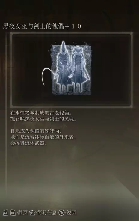 58、黑夜女巫与剑士的傀儡(消耗专注97) 获取方式:永恒之城内探索取得