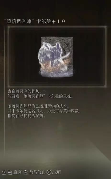 46、堕落调香师卡尔曼(消耗专注值124) 获取方式: 从火山官邸出发,和女主人对话后获得客房钥匙,在右侧第一个房间用客房钥匙打开里面有个隐藏墙壁,打开后在里面探索到另一个房间里捡取获得。