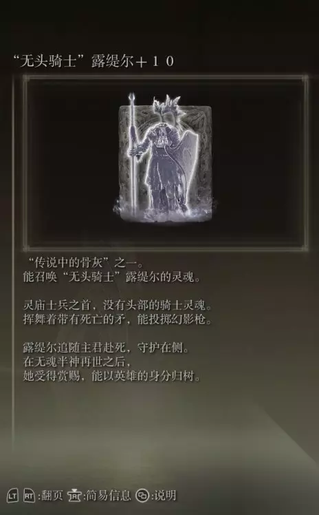 11、【传说】无头骑士露缇尔(消耗专注104) 获取方式: 灵庙原野地下墓地打败BOSS后获得