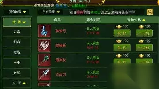随后,我们需要一些材料和装备来进行操作。有了这些装备,我们可以直接前往拍卖行,将我们需要卖出的装备寄售在那里。我们可以设定一个合适的价格,并选择以一手原价出售。一旦有其他玩家需要,他们会竞拍我们的物品。一旦竞拍成功,拍卖所得的游戏货币会直接发送到我们的邮箱中。这样一来,我们就会获得这些游戏货币,也称为元宝。元宝是游戏中的通用货币,非常珍贵,我们可以利用这些元宝与其他玩家进行交易。