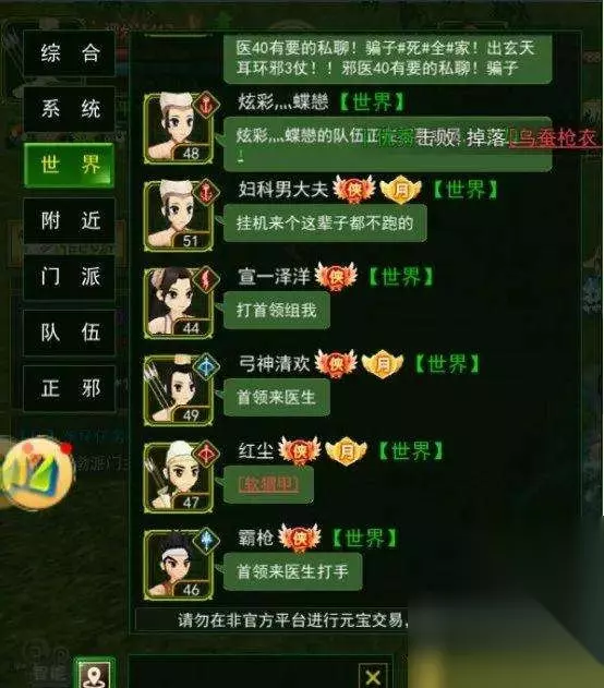 举个例子,游戏中某个玩家在全球频道喊话,表示想要元宝。如果你有兴趣,可以与他联系,商讨好价格后,通过拍卖行进行交易。 因为这个游戏暂时没有玩家之间直接交易的功能,所以你们可以利用拍卖行的方式来完成交易。比如,他可以在拍卖行上架一件物品,并设定好价格,然后你再去购买。通过这种方式,你们可以完成交易,从而能够继续进行游戏。 这样的交易方式让你可以继续进行游戏,并且通过购买元宝可以更好地发展自己的角色。