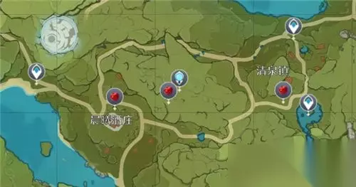 晨曦酒庄和清泉镇有三处采集位置,如图所示