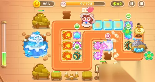 第3波开始大冰冻boss就开始仍雪球了,会把普通兔子变成冰冻兔子。应付这种兔子,要么就是让它在炮塔少的地方挂了,要么就是炮塔不要太集中,一起被冻了没人解。这关开始除了打兔子,还有尽快打靠近boss的3个箱子,里面是火瓶子,专门对方boss用的,如果打的太晚,等兔子波数完了还没有消灭boss,也是失败。 4、第4-12波