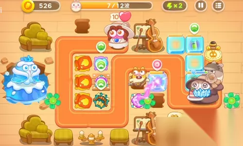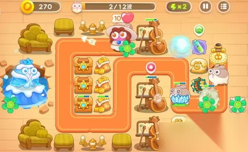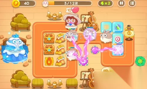 在出口放个2级风扇和多重箭,打兔子的同时能清理右上方的建筑。多重箭开始可以先打大提琴,因为刚开始出的普通兔子,风扇能应付。 2、第2波