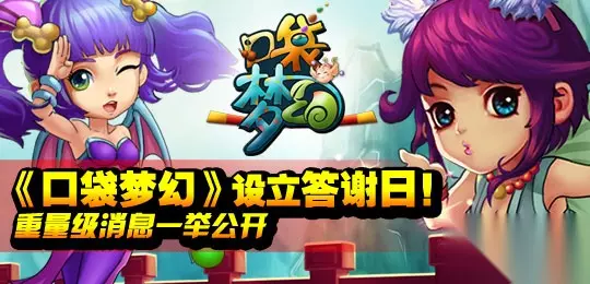 为感谢各位玩家的大力支持,我们将每月第三周的星期三设立为答谢日,以各种奖励和活动答谢玩家们。这个日子将成为《口袋梦幻》的节日,更是《口袋梦幻》玩家们的节日。本月的答谢日是11月20日,在这一天,大家将会获得很多福利,一定不要错过。 信息量超足的大曝料 在答谢日当天,我们会把近期最重量级的情报消息公布给广大玩家们,比如大家最关心的帮派玩法;也可能会为大家曝料一些游戏相关的八卦等等。总之,答谢日的信息量绝对让你满意。 丰富多彩的论坛活动 除了大量情报外,我们还会与其他媒体和渠道联合举行精彩的活动,活动当然是有奖励的,奖励非常丰厚,而且每个玩家都有机会得到。在这一天,千万不要忘记去参加活动哦。 答谢日特殊礼包 在答谢日期间,我们还会发放答谢日特殊礼包。礼包中包含的奖励,可是一般礼包根本没法比的。这个礼包任何客户端都可以使用,并且没有等级限制,新老玩家都可以领。可以说不怕你不来拿,就怕你抢不到。 答谢日专属副本 最后这个也是最重头的,在今后的答谢日,游戏中将会更新一个当日专属副本,既然是节日专属,奖励就不用多说,必须丰厚。这个副本玩家们也不用担心自己的游戏进度不够而打不过,我们为各阶段的玩家设立的相应难度,保证任何人都可以参加,获得奖励。 《口袋梦幻》答谢日,将会成为你每月绝不可错过的日子,在《口袋梦幻》的节日里,让我们尽情的享受快乐,来一场大狂欢吧!