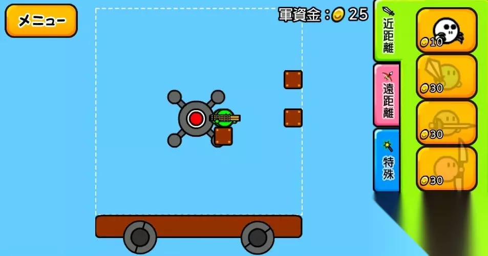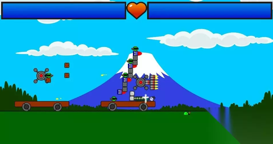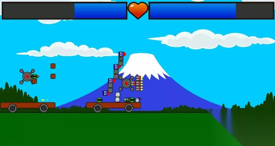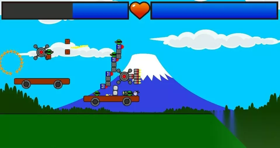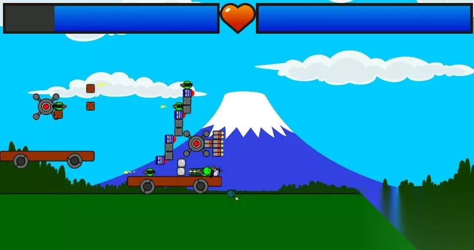 楼主第九关卡了一段时间,最后研究出这个方法 花玉的攻击爆炸后可以透过方块,直接炸到对面核心 而且对面很快被撞伤害很高,所以不能吃对面任何一发炮 核心位置 185 170 载兵的方块 220 220 上面的方块高度115,拉到最前面 前面中间的方块185,同样拉到最最前面 兵就是这种,尽量多的叠就行 第一轮齐射
