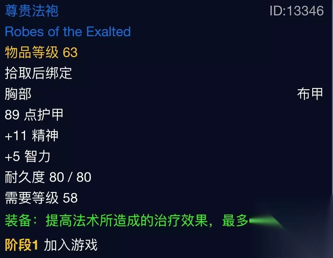 牧师必备,四大本最强治疗法袍?高达68的治疗非它莫属!掉落于男爵。