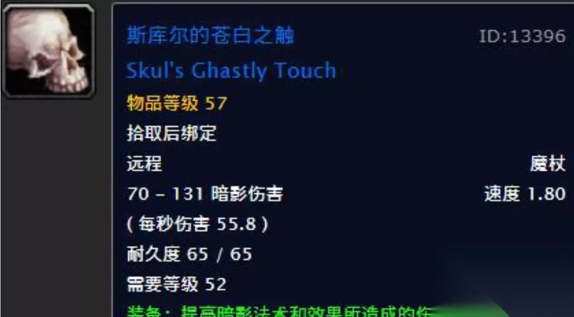 术士专属,暗影伤害14点魔杖,掉落于稀有精英斯库尔。