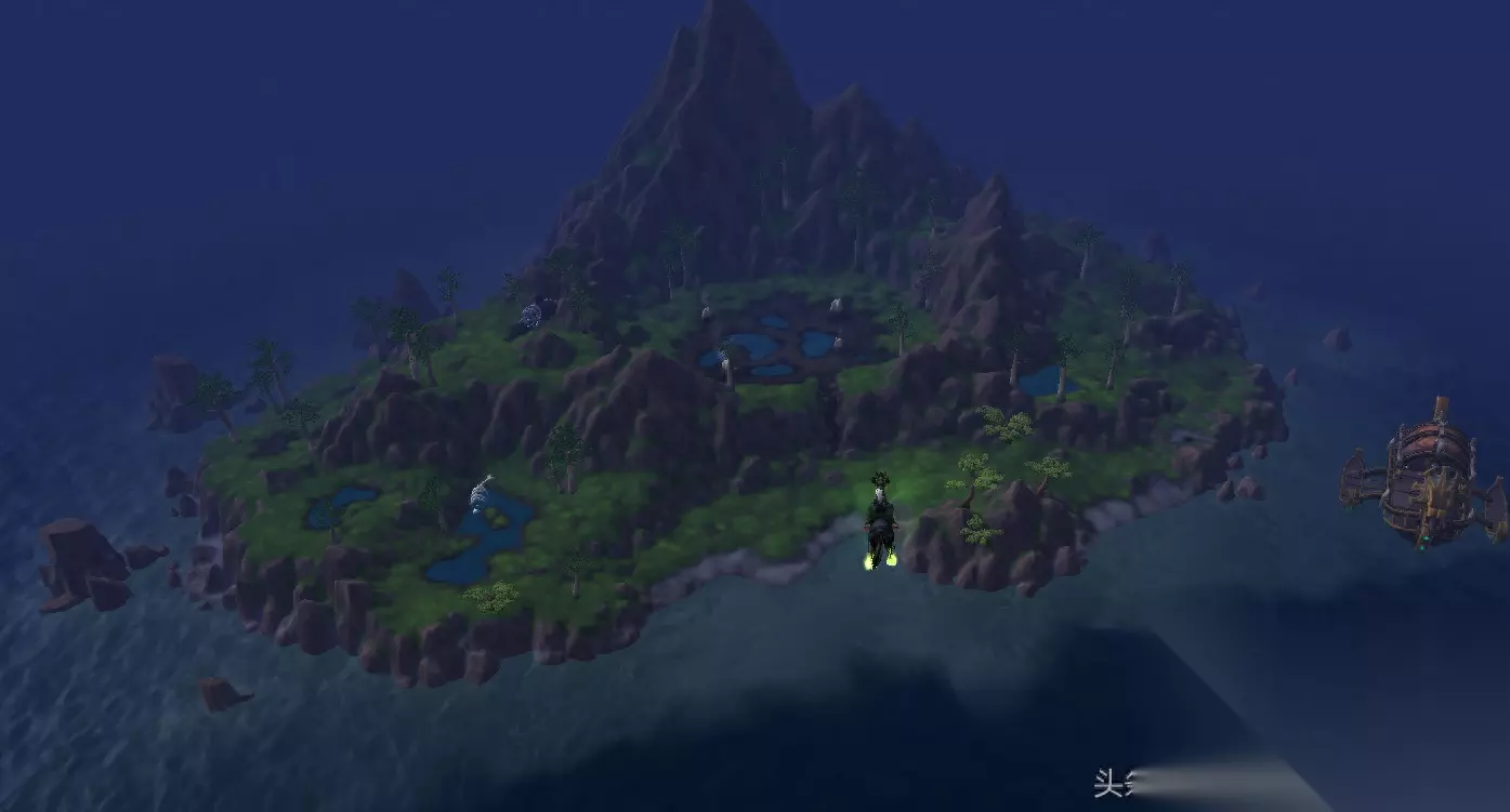 我们上岛之后的第一件事应该是开启岛上的飞行点,这样我们以后再想来这里可以直接在锦绣谷乘坐计程车飞过来,如下图所示,左边的红圈可以隐约看见狮鹫,那里是联盟飞行点,右边隐约有残骸,那里是部落飞行点,先过去把飞行点开了。