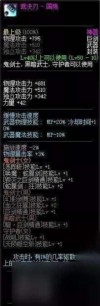 8.天选之剑-格朗 朴实无华的装备效果,20%的武器攻击力,提升巨大,当年的eiji拿着一把+15的格朗竞速野猪,直接震惊了所有DNF玩家,真就天选之剑,猛的一匹。