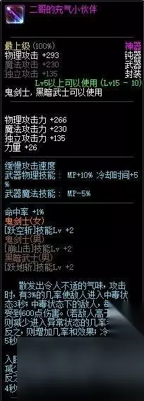 篇幅所限,本期盘点只包含封装粉色武器,不包含领主神器,正片开始。 1.二哥的充气小伙伴 纯粹的玩具,令人遐想的名字,骚气的外形,不得不说,DNF的策划真的有点恶趣味。
