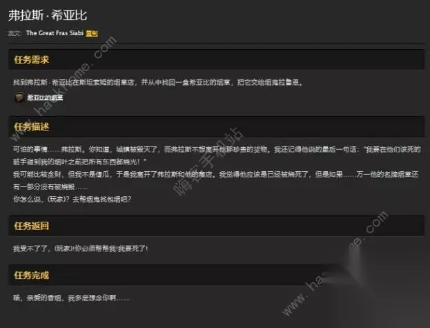 55级 弗拉斯・希亚比 具体坐标:(烟鬼拉鲁恩-圣光之愿礼拜堂74.9,52.1)