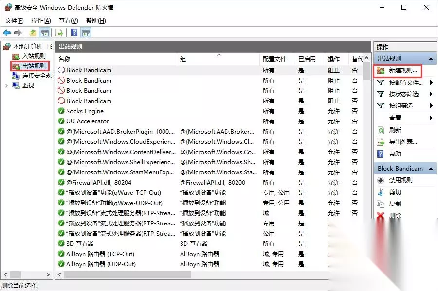 2、点击 出站规则 - 新建规则。